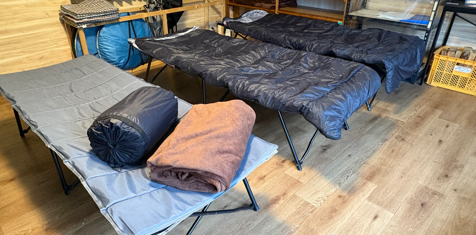 ・1号店は寝袋と寝袋用マットが人数分ございます。